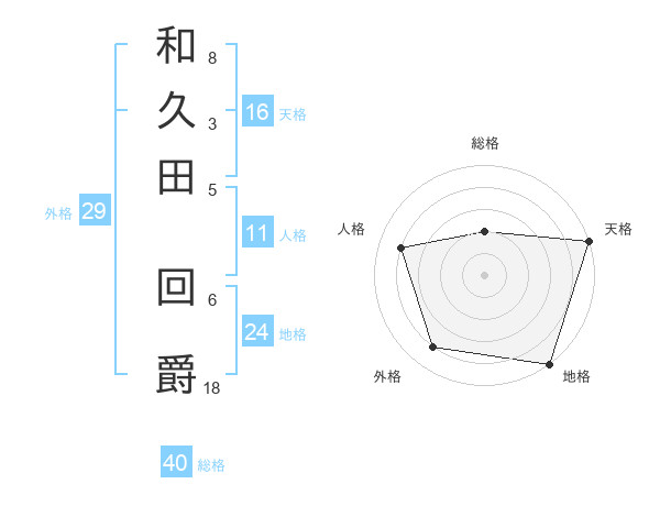 和久田 回爵さんを姓名の画数から五運を鑑定