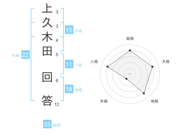 上久木田 回答さんを姓名の画数から五運を鑑定