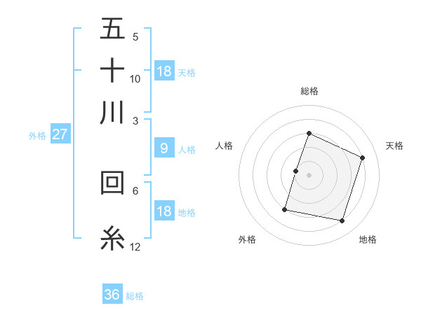 五十川 回糸さんの総格は36画の3点!