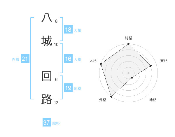 八城 回路さんの総格は37画の5点!