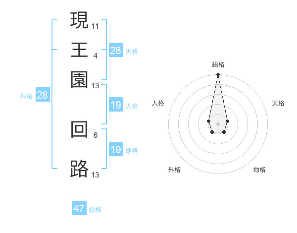 現王園 回路さんの総格は47画の5点!