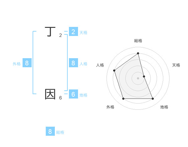 丁 因さんの総格は8画の4点!