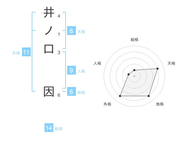 井ノ口 因さんを姓名の画数から五運を鑑定