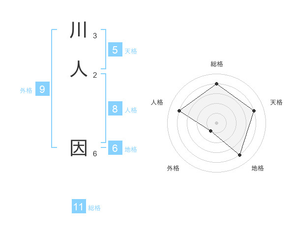 川人 因さんの天格は5画の4点!