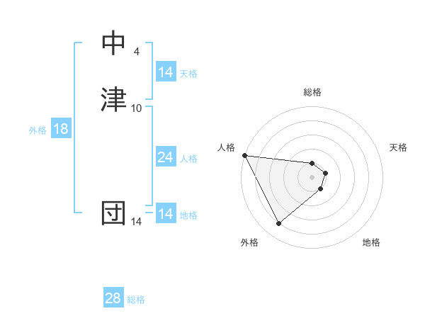 中津 団さんの総格は28画の1点!