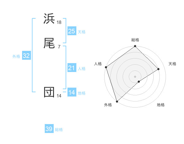 浜尾 団さんの総格は39画の5点!