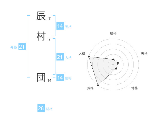 辰村 団さんの外格は21画の5点!