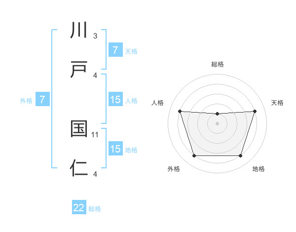 川戸 国仁さんを姓名の画数から五運を鑑定