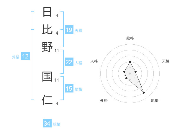 日比野 国仁さんを姓名の画数から五運を鑑定