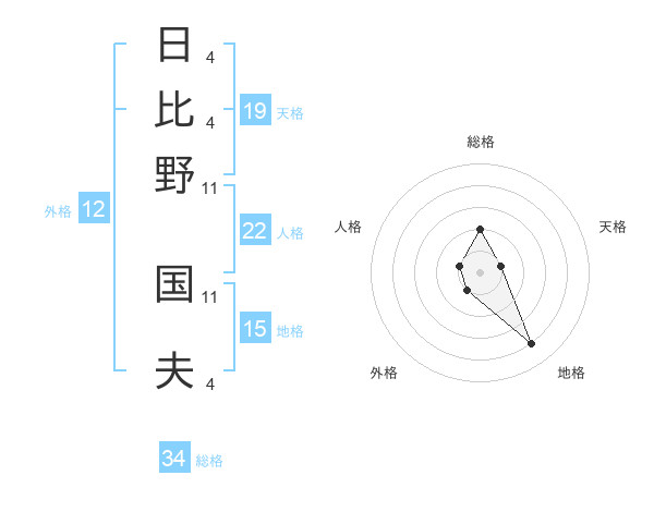 日比野 国夫さんを姓名の画数から五運を鑑定