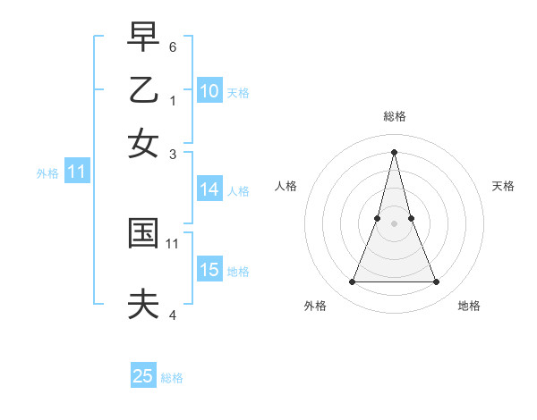 早乙女 国夫さんを姓名の画数から五運を鑑定