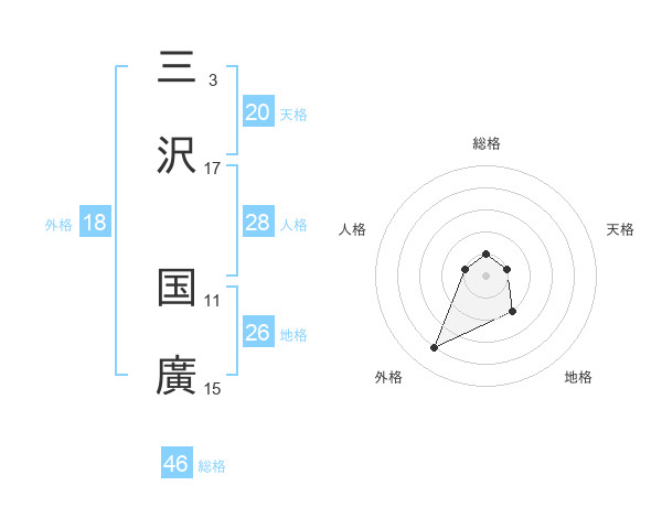 三沢 国廣さんの天格は20画の1点!