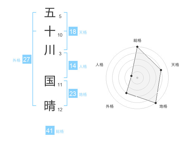 五十川 国晴さんを姓名の画数から五運を鑑定