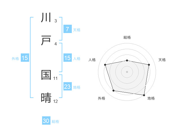 川戸 国晴さんを姓名の画数から五運を鑑定