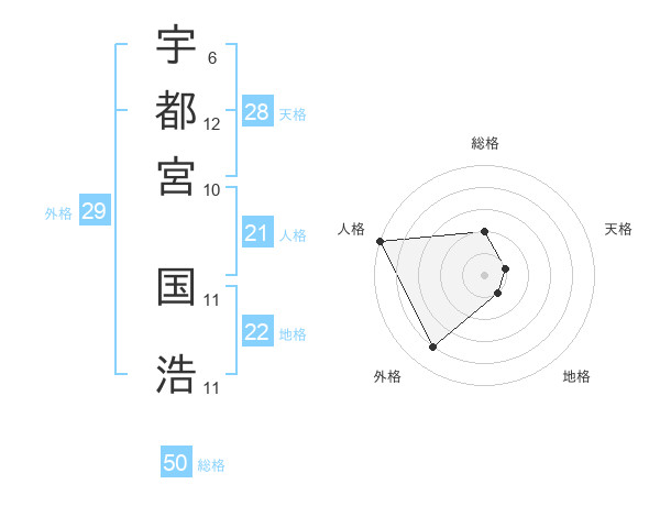 宇都宮 国浩さんを姓名の画数から五運を鑑定