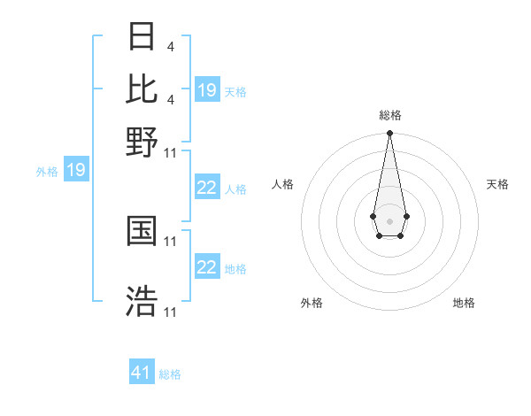 日比野 国浩さんを姓名の画数から五運を鑑定