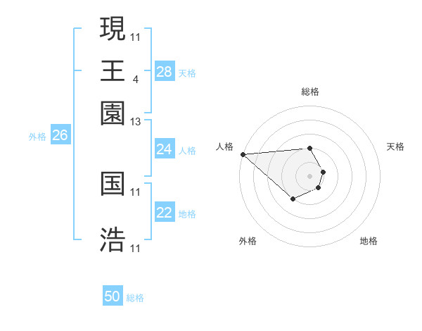 現王園 国浩さんを姓名の画数から五運を鑑定