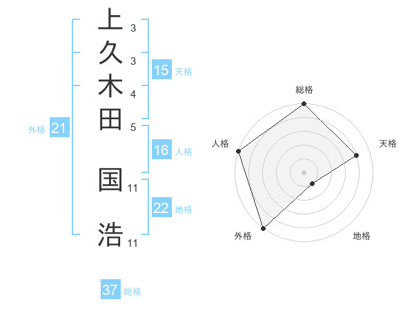 上久木田 国浩さんを姓名の画数から五運を鑑定