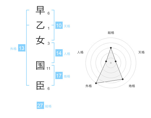 早乙女 国臣さんを姓名の画数から五運を鑑定