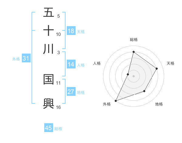 五十川 国興さんの総格は45画の4点!