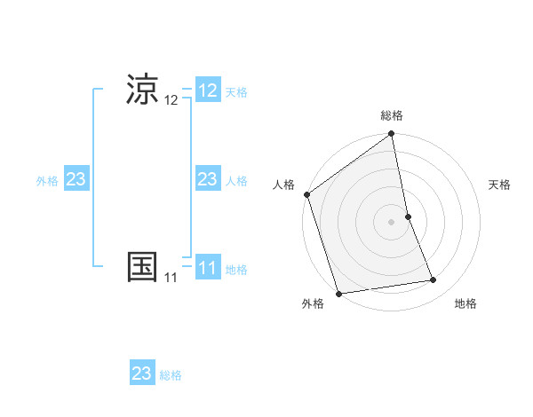 涼 国さんの外格は23画の5点!