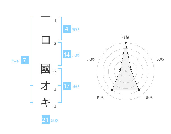 一口 國オキさんの総格は21画の5点!