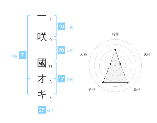 一咲 國オキさんを姓名の画数から五運を鑑定