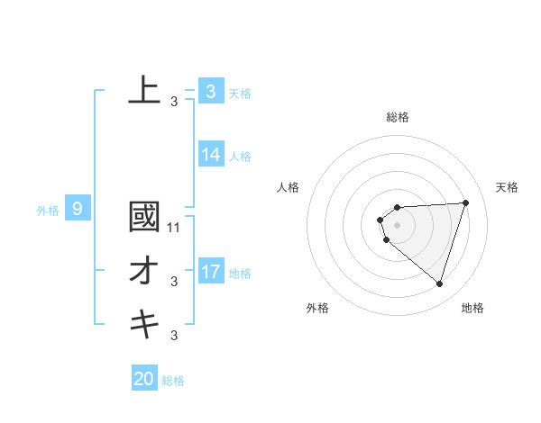 上 國オキさんの総格は20画の1点!