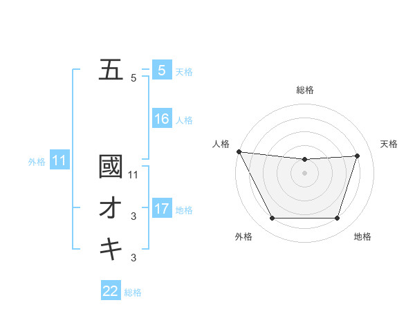 五 國オキさんの総格は22画の1点!