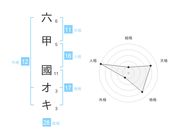 六甲 國オキさんの総格は28画の1点!