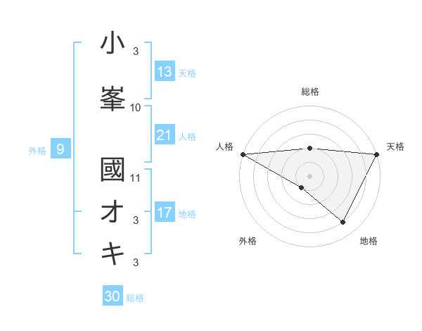小峯 國オキさんを姓名の画数から五運を鑑定