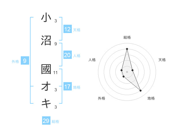 小沼 國オキさんを姓名の画数から五運を鑑定