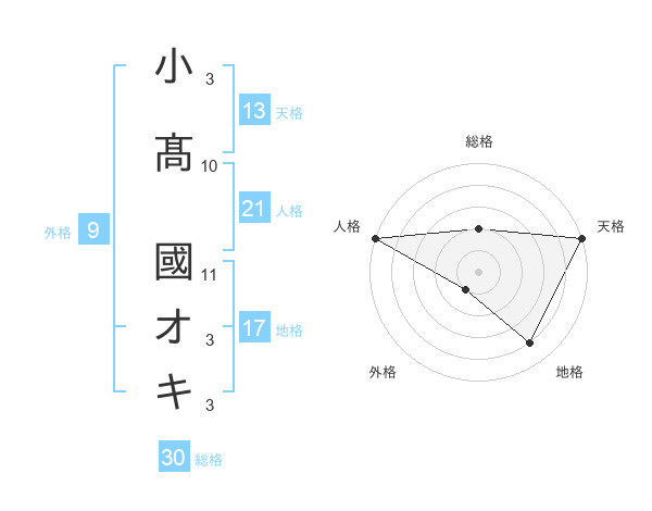 小髙 國オキさんを姓名の画数から五運を鑑定