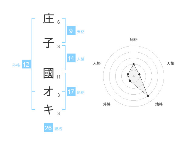 庄子 國オキさんを姓名の画数から五運を鑑定