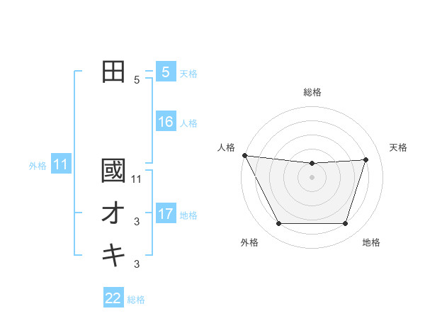 田 國オキさんの天格は5画の4点!