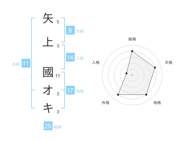 矢上 國オキさんを姓名の画数から五運を鑑定