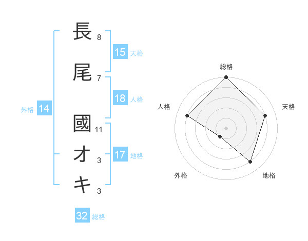 長尾 國オキさんを姓名の画数から五運を鑑定