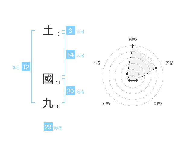 土 國九さんの総格は23画の5点!