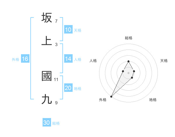 坂上 國九さんの地格は20画の1点!