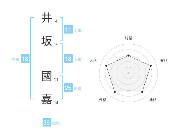 井坂 國嘉さんを姓名の画数から五運を鑑定