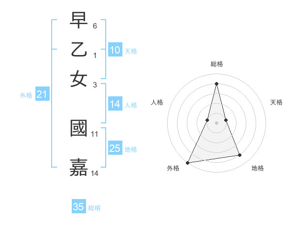 早乙女 國嘉さんを姓名の画数から五運を鑑定