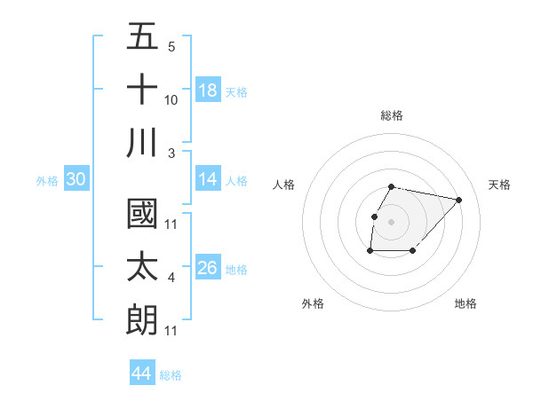 五十川 國太朗さんを姓名の画数から五運を鑑定