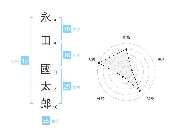 永田 國太郎さんの総格は35画の4点!
