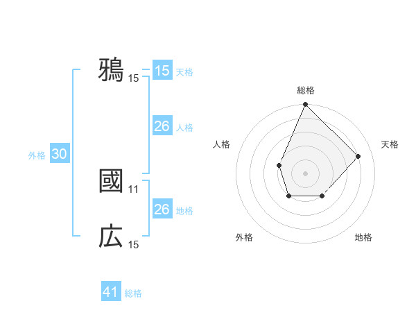 鴉 國広さんの総格は41画の5点!