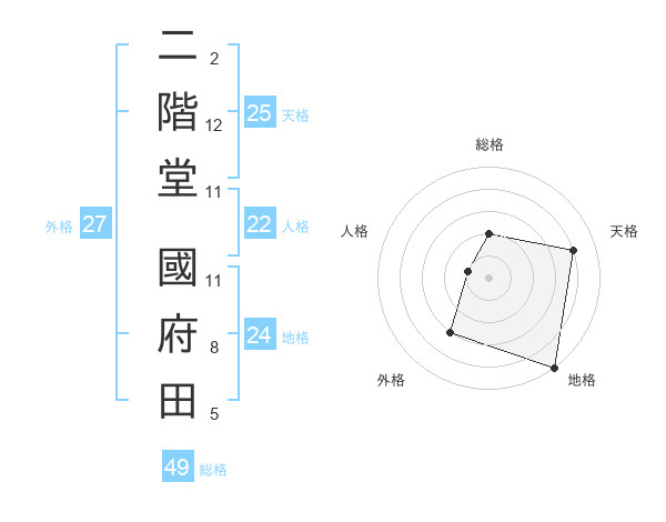 二階堂 國府田さんを姓名の画数から五運を鑑定