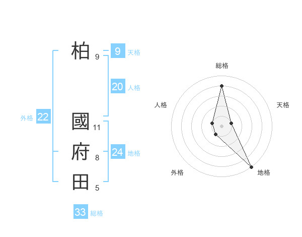 柏 國府田さんの地格は24画の5点!