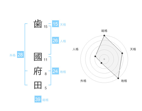 歯 國府田さんの外格は28画の1点!