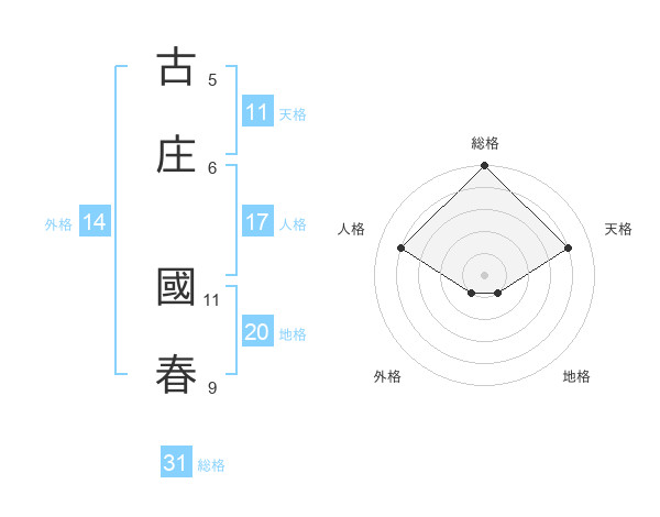 古庄 國春さんの総格は31画の5点!