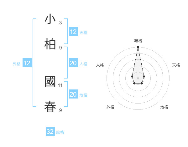 小柏 國春さんの総格は32画の5点!