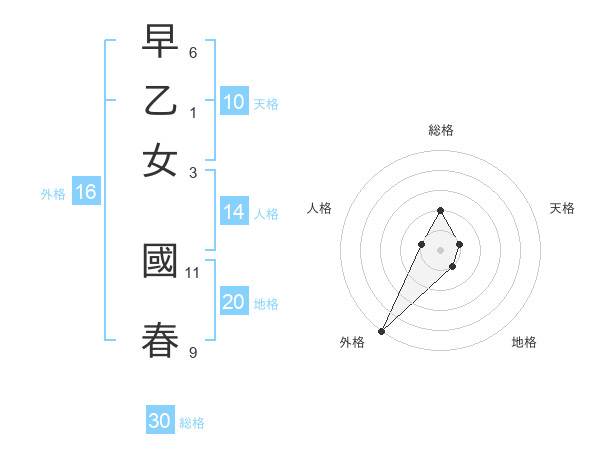 早乙女 國春さんの総格は30画の2点